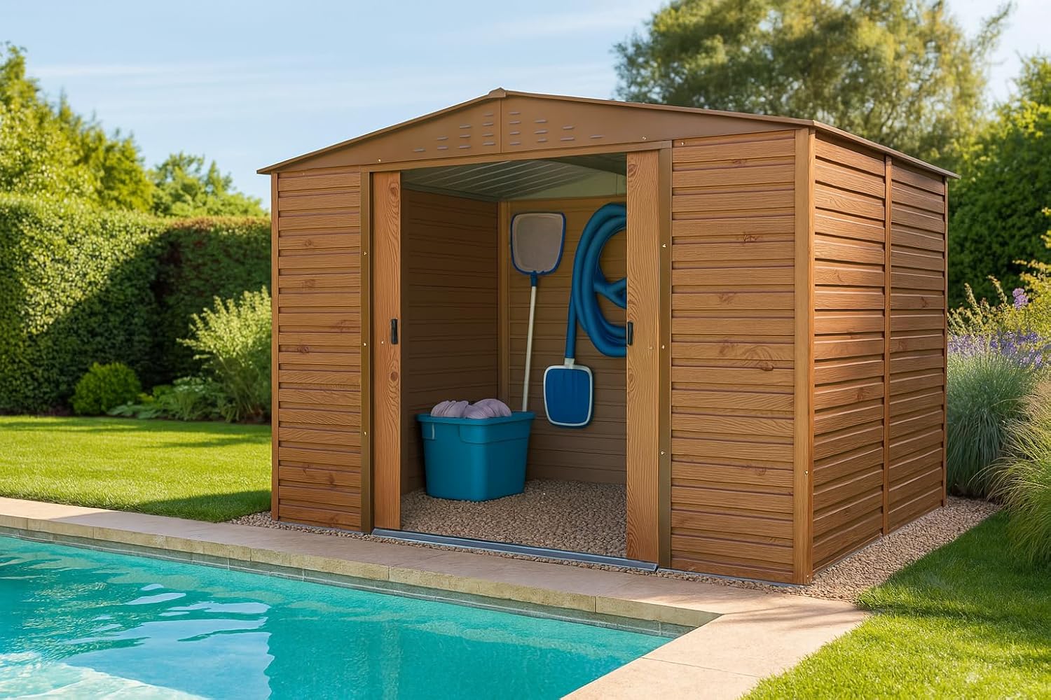 CASETA COBERTIZO METAL JARDIN ALPINE 10X10 IMITACION MADERA DURAMAX MARRON