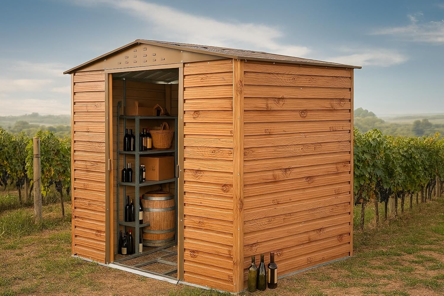 CASETA COBERTIZO METAL JARDIN ALPINE 8X6 IMITACION MADERA DURAMAX MARRON