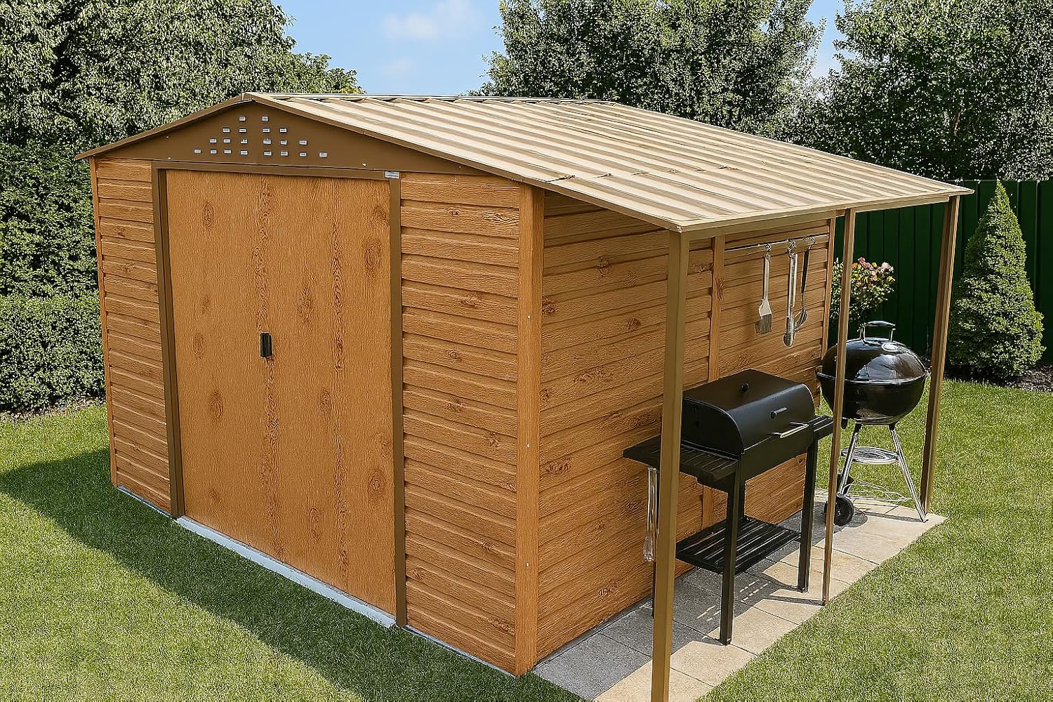 CASETA COBERTIZO METAL JARDIN ALPINE 10X8 IMITACION MADERA DURAMAX MARRON