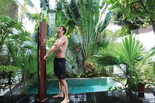 Las duchas solares Kokido hacen que el momento de la ducha sea agradable y placentero gracias al control que el usuario puede hacer de la temperatura del agua.