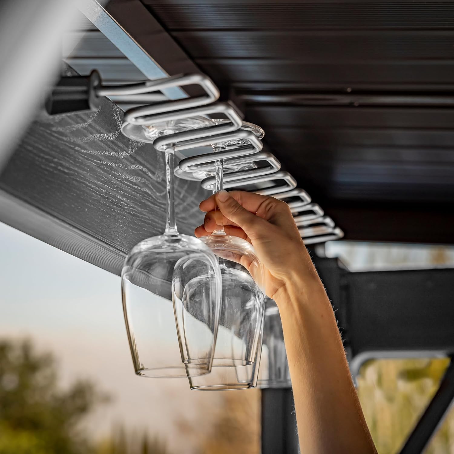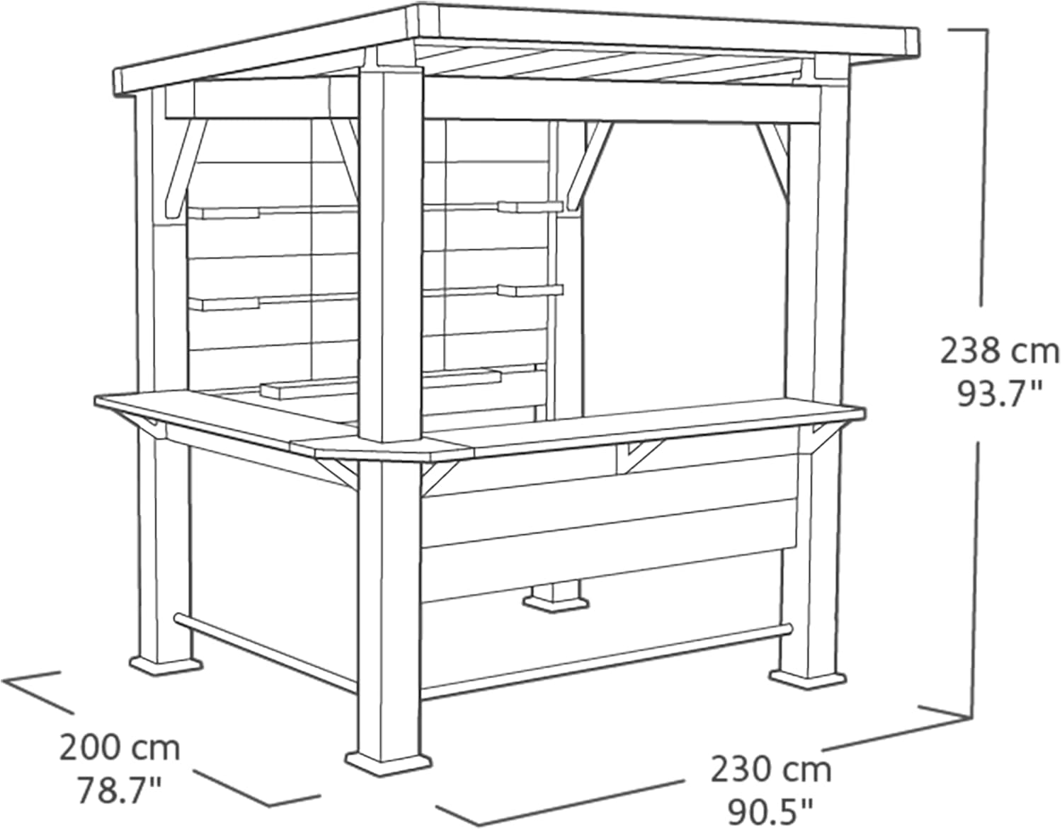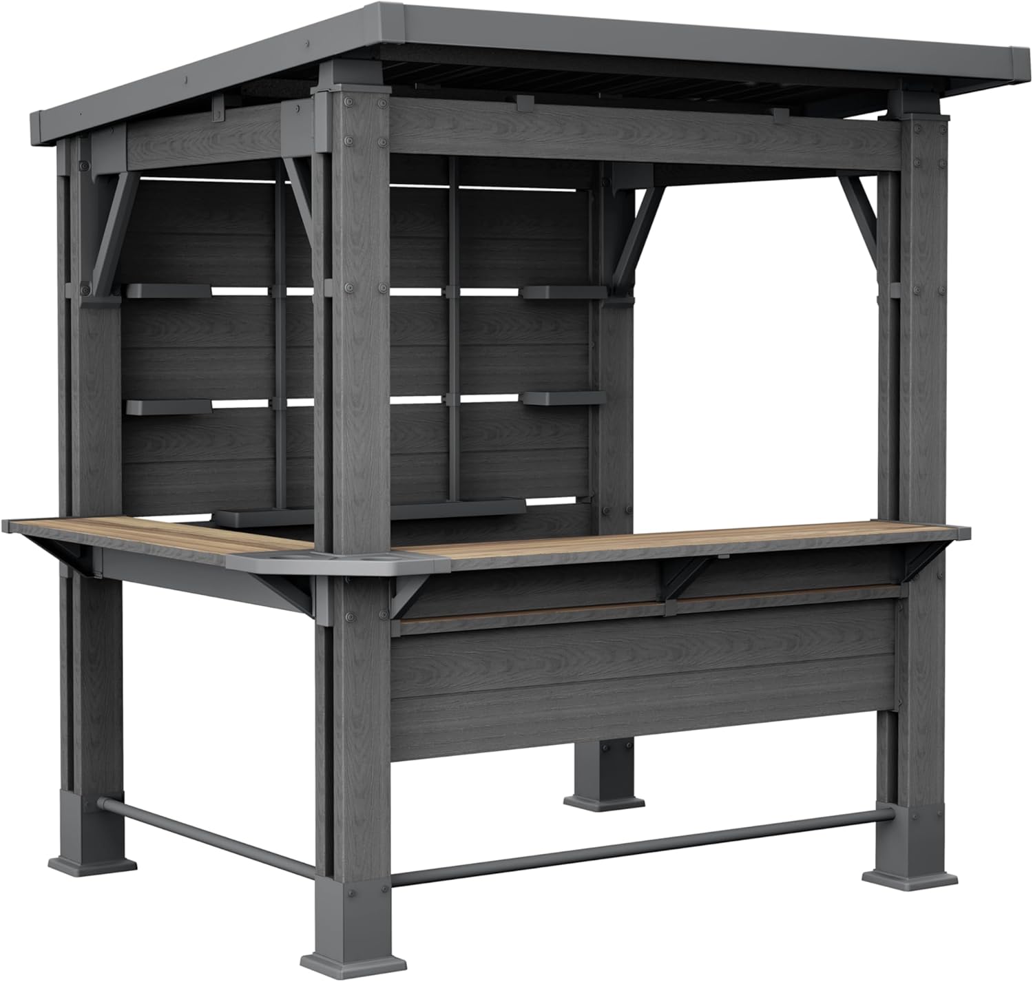 El cenador Bar es una solución práctica que les brindará a usted y a sus seres queridos momentos inolvidables y relajantes al aire libre. Olvídese del mantenimiento y las reparaciones anuales, y de las plagas. Gracias a su resistencia a la intemperie, su construcción ligera y su fácil montaje (que solo requiere dos personas), ¡creará un nuevo espacio en su jardín! El cenador Bar cuenta con estantes adicionales y permite la conexión eléctrica. Está fabricado con materiales reciclados. A diferencia de los cenadores tradicionales, el cenador Bar no requiere deforestación ni extracción de recursos naturales, lo que lo convierte en una opción consciente y responsable.