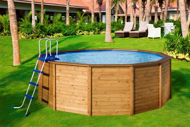La madera con la que se fabrica la piscina está tratada en Autoclave Clase III para su óptima conservación al aire libre y tintada en marrón para conseguir un acabado Premium.