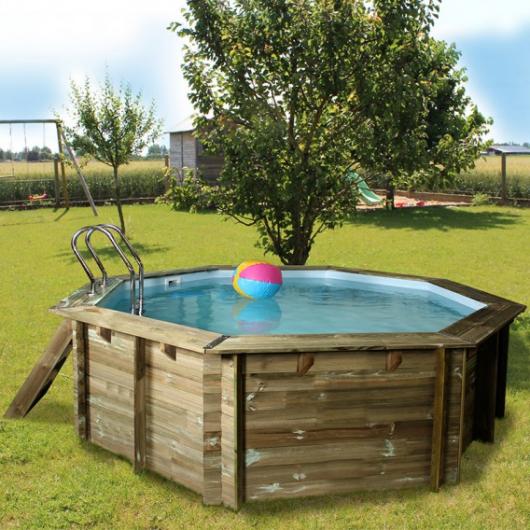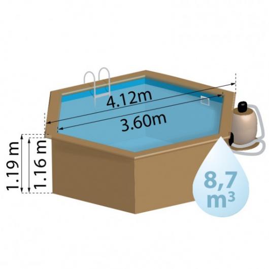 Piscina de madera hexagonal Gre Sunbay de 360 cm de diámetro y 116 cm de altura (dimensiones interiores).